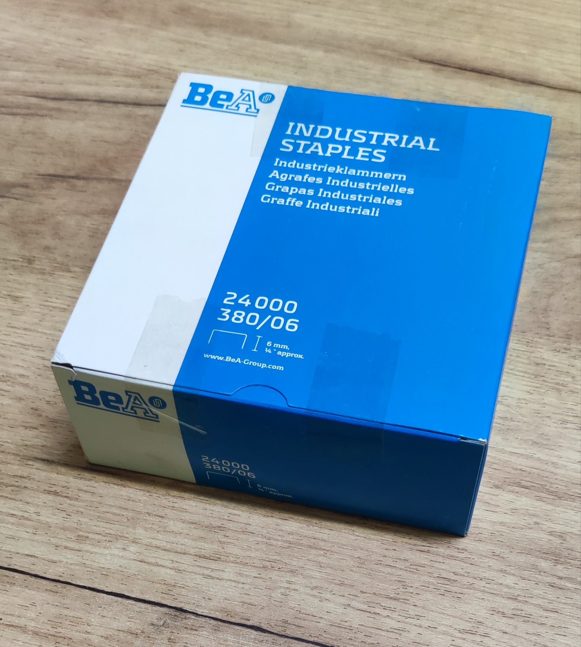 Čalúnnické spony BeA 380/06 (80/60), ktoré sa používajú na čalúnenie nábytku, pripevňovanie textilu, koží, fólií, papiera a lepenky, tenkých izolácií a podobne